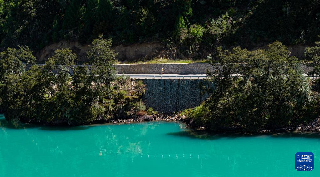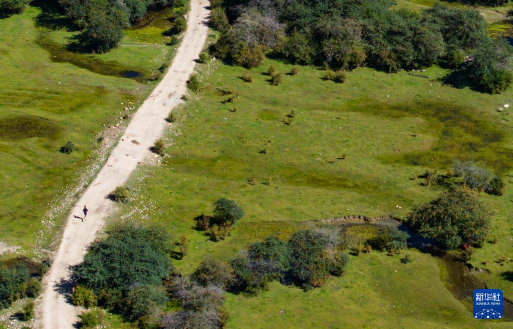 9月27日,參賽選手在賽道上奔跑(無(wú)人機(jī)照片)。新華社記者 格桑朗杰 攝