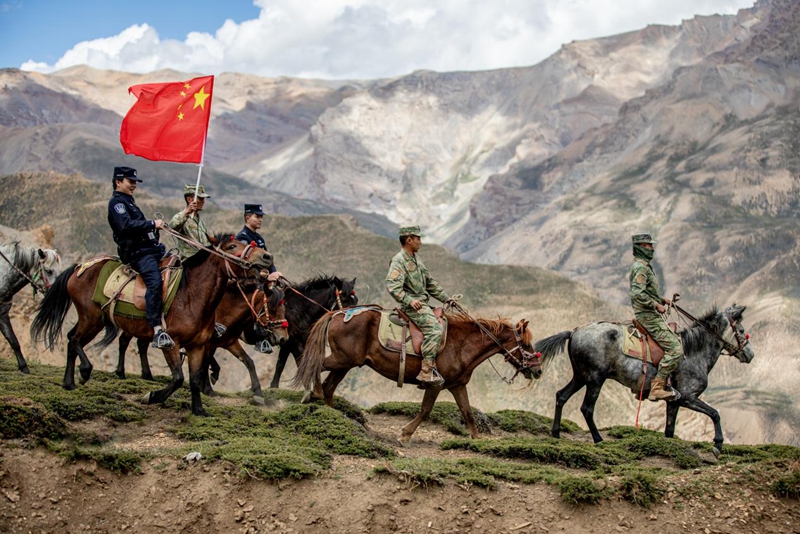 更艱險(xiǎn)的巡邊路,隱沒在海拔5000米的峭壁之上。民警、戰(zhàn)士與村民騎著馬,在絕壁間逶迤前行,落石與暗冰隨時(shí)可能出現(xiàn)。次仁多布杰輕撫馬鬃,聲音如雪山般沉穩(wěn):“我父親的父親的父親就在這里出生,這里必須有人守。我住,我的孩子也要??!若無(wú)人守邊,何人護(hù)國(guó)?”作為受人尊敬的村醫(yī),他本可退休進(jìn)城,安享優(yōu)渥。但他依然選擇守護(hù)這片土地。