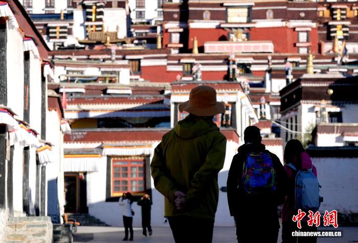 10月7日,游客在西藏日喀則市扎什倫布寺參觀。扎什倫布寺始建于公元1447年,是中國國家5A級旅游景區(qū)。憑借深厚的歷史底蘊(yùn)和獨(dú)特的文化魅力,吸引眾多中外游客參觀游覽。中新社記者 李林 攝