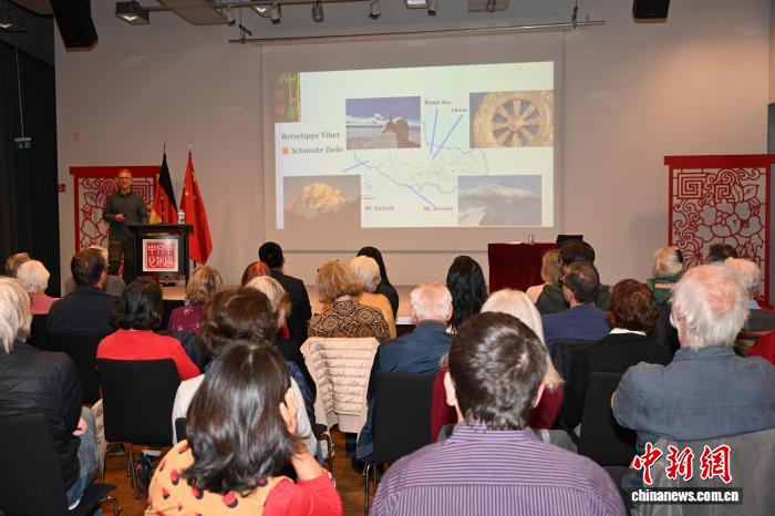 圖為米福熱情洋溢地介紹中國(guó)西藏。柏林中國(guó)文化中心 供圖