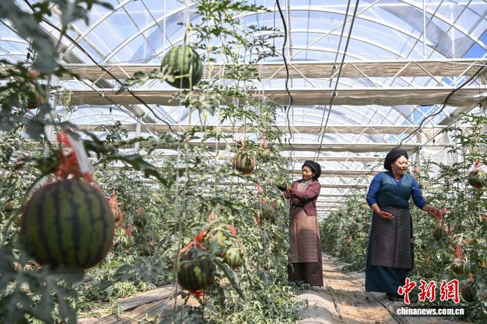 圖為當(dāng)?shù)毓と嗽谀窆たh現(xiàn)代化農(nóng)業(yè)示范園里工作。中新社記者 貢嘎來(lái)松 攝