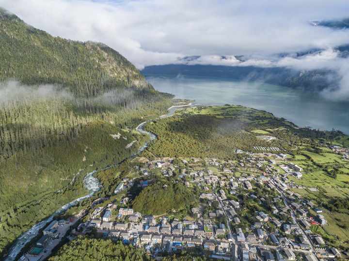這是2023年7月20日拍攝的西藏林芝市工布江達(dá)縣錯高鄉(xiāng)結(jié)巴村景色(無人機(jī)照片)。新華社記者 孫非 攝