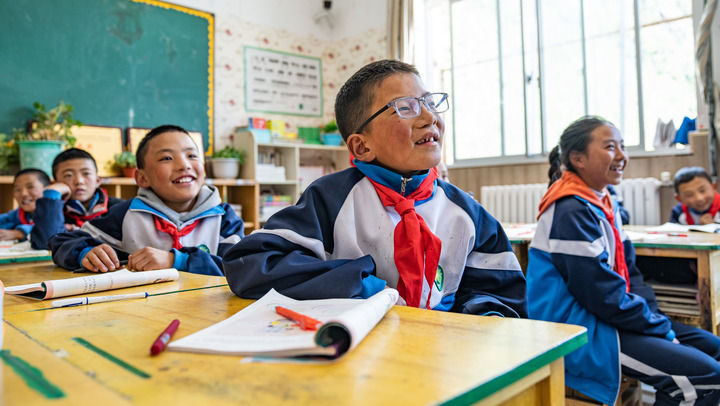 2024年9月3日,西藏林芝市工布江達(dá)縣娘蒲鄉(xiāng)中心小學(xué)五年級的學(xué)生在上課。新華社記者 丁增尼達(dá) 攝
