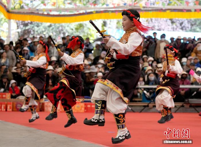 圖為西藏青少年校外實(shí)踐教育成果匯報(bào)展上的舞臺藝術(shù)展演。李林 攝