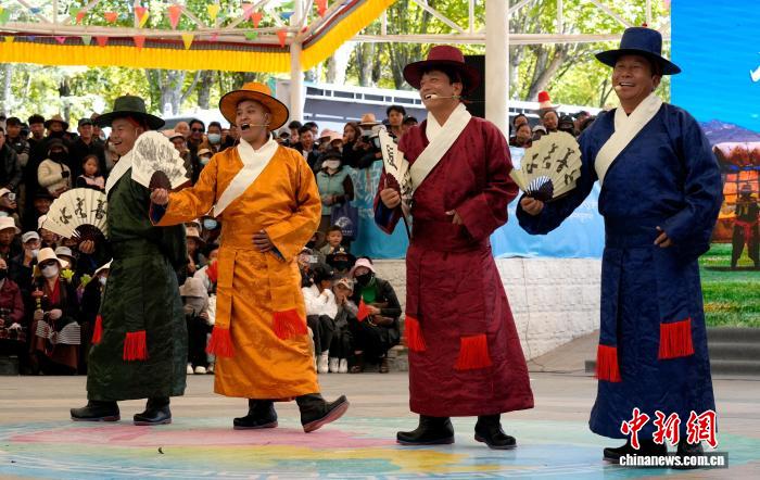 10月19日,“格桑花杯”拉薩市第六屆縣(區(qū))藝術(shù)團文藝調(diào)演頒獎活動在布達拉宮腳下的宗角祿康公園舉行。現(xiàn)場,拉薩市各縣(區(qū))藝術(shù)團帶來精彩節(jié)目。圖為文藝調(diào)演頒獎活動上的文藝表演。中新社記者 李林 攝