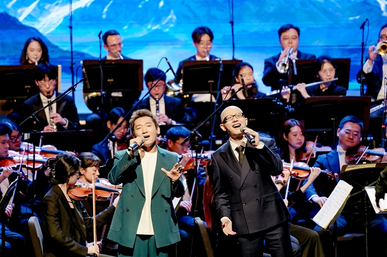 音樂會的敘事不僅關乎歷史,更著眼于當下蓬勃發(fā)展的新西藏。詩朗誦《我來了,西藏》以其作者——從江南水鄉(xiāng)援藏留藏的干部、魯迅文學獎獲得者陳人杰的親身經歷為底色,由濮存昕、溫玉娟兩位表演藝術家深情演繹,道出了無數建設者對這片土地的眷戀。而由援藏干部、北京科技大學副校長鄭安陽與藏族青年歌手露丹卓瑪共同演唱的《老西藏》,則是一次深刻的精神接力,深情謳歌了“老西藏精神”。