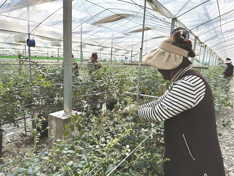 “您看這棵已開花,說明需要調低溫度,溫度高了藍莓容易開花,開花過快會影響果實收成?!被丶夹g員措姆向記者介紹,“我畢業(yè)于華中農業(yè)大學農業(yè)資源與環(huán)境專業(yè),藍莓種植基地建成后,就來到這里。專業(yè)對口,工作穩(wěn)定,我很喜歡現在的工作。”