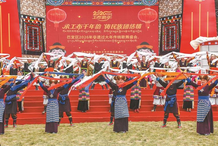 11月21日(工布新年大年初一),在林芝市巴宜區(qū)依舍莊園,“承工布千年韻 鑄民族團(tuán)結(jié)情”——巴宜區(qū)2026年“非遺過大年”傳統(tǒng)歌舞盛會精彩上演。整場演出圍繞工布年味、非遺傳承、民族團(tuán)結(jié)三大主題,分設(shè)“歲月如歌·福滿工布”“匠心歡歌·情系家園”“團(tuán)結(jié)歡歌·共譜華章”三大篇章,20余個(gè)節(jié)目涵蓋男女聲獨(dú)唱、民俗舞蹈、器樂演奏等多種表演形式,將高原獨(dú)特民俗風(fēng)情與深厚文化底蘊(yùn)相融合,為市民游客帶來了一場具有民族特色的視聽盛宴。