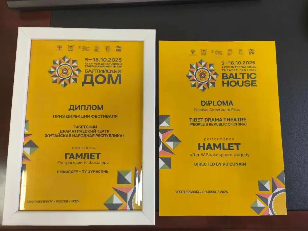 由濮存昕執(zhí)導(dǎo)、西藏自治區(qū)話劇團演出的話劇《哈姆雷特》,在第三十五屆“波羅的海之家”國際戲劇節(jié)中,榮獲“波羅的海之家”國際戲劇節(jié)最佳劇目獎。