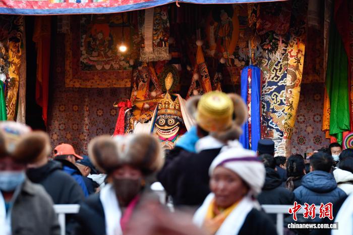 12月4日即藏歷十月十五日是藏族傳統(tǒng)的節(jié)日“白來日追”,俗稱“仙女節(jié)”、“白拉姆節(jié)”等。相傳藏傳佛教最高護法神之一班丹拉姆的女兒白拉姆,不顧母親的反對與赤尊贊私定終身,班丹拉姆一怒之下將赤尊贊趕到拉薩河南岸,規(guī)定二人僅每年的藏歷十月十五日相見。圖為信眾在大昭寺朝拜白拉姆像。中新社記者 貢嘎來松 攝