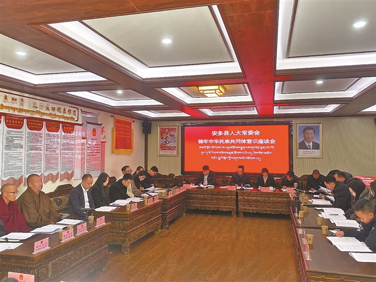 圖為安多縣人大常委會(huì)召開(kāi)鑄牢中華民族共同體意識(shí)座談會(huì)現(xiàn)場(chǎng)。記者 汪純 攝