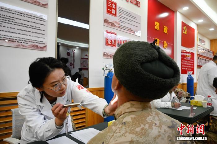 圖為醫(yī)生為部隊(duì)官兵檢查身體。西藏軍區(qū)總醫(yī)院供圖