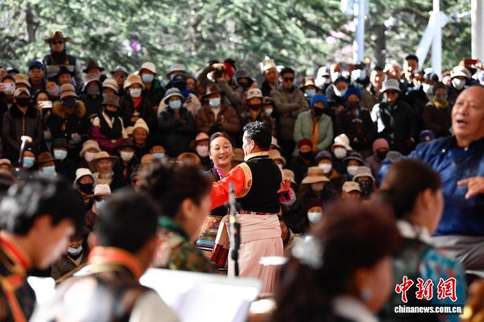 圖為群眾音樂會(huì)表演拉薩堆諧《強(qiáng)確拉》。中新社記者 貢嘎來松 攝