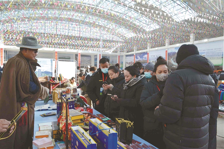 這次展銷會不僅線下熱鬧,線上也同樣火爆。為了讓各類產(chǎn)品走得更遠,展銷會特意搭建起“線上直播帶貨+線下現(xiàn)場選購”的雙線銷售通道,一邊是線下市民現(xiàn)場挑、現(xiàn)場買,新鮮看得見、品質(zhì)摸得著;一邊是主播對著鏡頭,向全國網(wǎng)友推介那曲好物,讓遠在千里之外的消費者也能品嘗到那曲味道。同時,展銷會還邀請電商平臺、采購商代表和參展商精準對接,幫本土農(nóng)畜產(chǎn)品打通銷路,再也不愁“酒香巷子深”;積極引導(dǎo)機關(guān)、企事業(yè)單位及社會各界參與消費幫扶,以“以購代扶”“以買促銷”的方式助力本土產(chǎn)業(yè)發(fā)展,在全市形成“人人支持本土產(chǎn)業(yè)、人人參與鄉(xiāng)村振興”的濃厚氛圍。