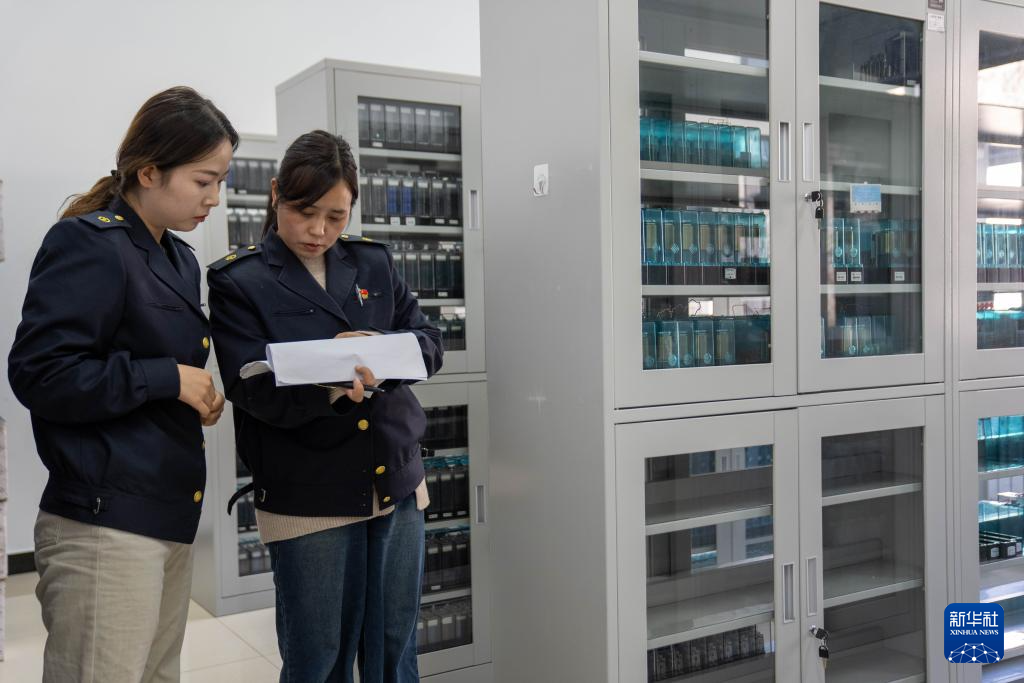 1月6日,拉薩基礎(chǔ)設(shè)施段電務(wù)專修車間繼電器檢修工區(qū)的信號(hào)工路東燕(左)和德吉卓瑪在檢查繼電器庫(kù)房臺(tái)賬。新華社記者 旦增尼瑪曲珠 攝