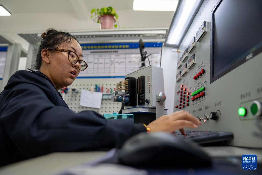 1月6日,拉薩基礎(chǔ)設(shè)施段電務(wù)專修車間繼電器檢修工區(qū)的信號(hào)工德吉卓瑪在檢測(cè)繼電器。新華社記者 旦增尼瑪曲珠 攝