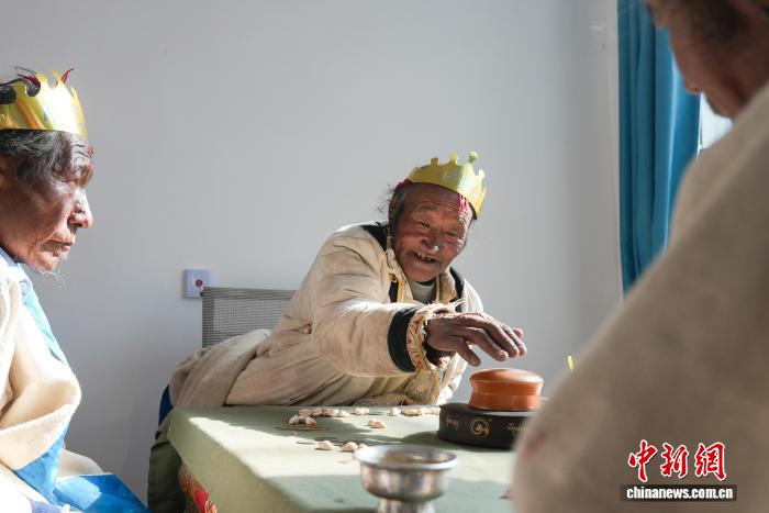 圖為西藏定結縣郭加鄉(xiāng)切村,農村幸福院里,老人們在玩骰子。貢確 攝