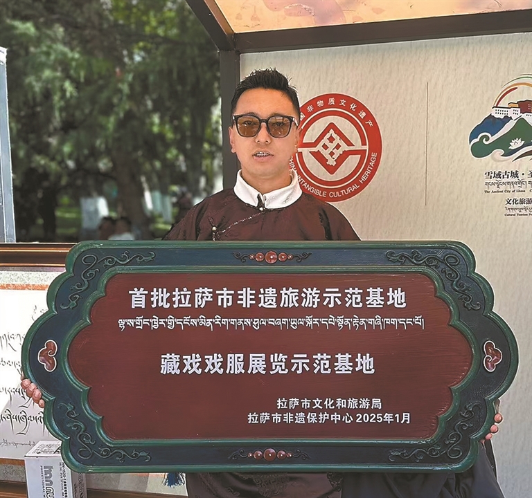 ——2020年,合作社被正式認定為拉薩市級產(chǎn)業(yè)示范基地。這一年,他還帶著阿古藏戲服飾走出雪域高原,先后參加北京市青年創(chuàng)新創(chuàng)業(yè)項目展銷活動、拉薩市青年代表團成都交流活動,在首屆西藏自治區(qū)民族特色精品云展會期間線上展示合作社產(chǎn)品,讓更多人了解藏戲服飾的魅力;