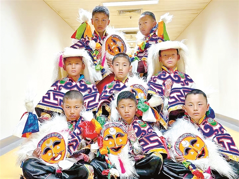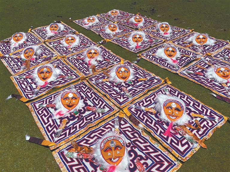 作為藏戲藝術(shù)的重要載體,色彩繽紛的藏戲服飾、神秘獨特的面具常讓人眼前一亮,但其制作技藝用料考究、形制莊重,極其考驗匠人的功底。拉薩市達孜區(qū)雪鄉(xiāng)扎西崗村的阿古家族,是當?shù)赜忻牟貞蚍椫谱魇兰?,憑借精湛手藝傳承五代,有著數(shù)百年的歷史。