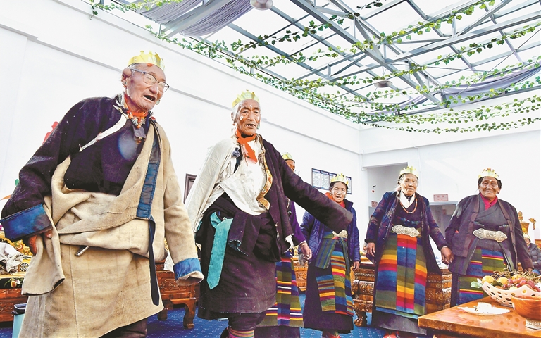 從基礎(chǔ)設(shè)施的堅實保障,到尋常人家的溫暖日常,發(fā)展的溫度在細(xì)節(jié)中流淌。在海拔4300米的定結(jié)縣切村幸福院,老人們正圍坐擲著“秀茲”,手捧溫?zé)岬乃钟筒?。“院里設(shè)施齊全,生活很充實?!?8歲的堅參笑著說。最讓他安心的是定期上門的醫(yī)療服務(wù)——醫(yī)生常來測量血壓,守護(hù)著老人們的健康。這溫馨一幕,正是“十五五”開局之年西藏養(yǎng)老服務(wù)保障扎實落地的縮影,讓“老有所養(yǎng)、老有所樂”在雪域高原成為看得見、摸得著的幸福。
