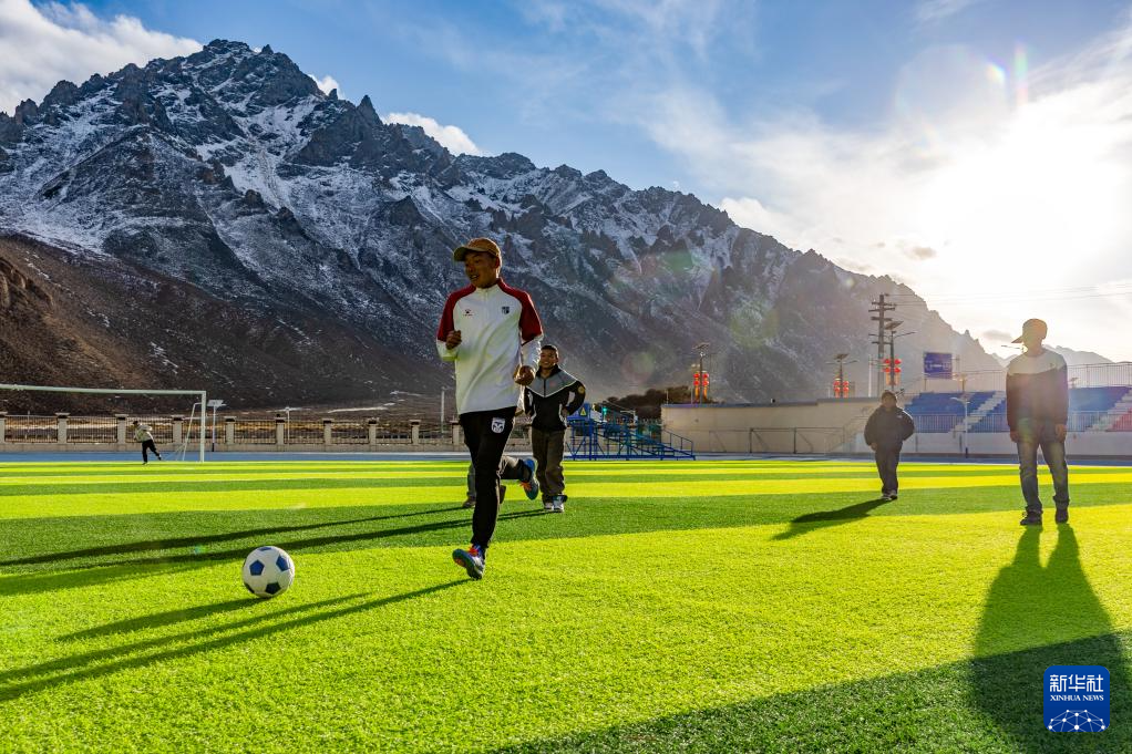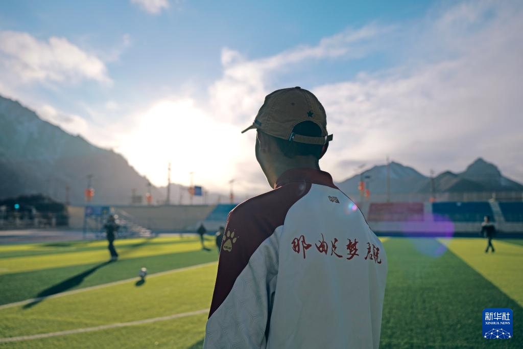 頓珠嘉措是嘉黎縣中學初二的學生,也是該校足球隊的成員。嘉黎縣中學的球場被當?shù)厝朔Q為“雪山下的夢幻球場”,球場背靠連綿的雪山,白云飄蕩在藍天。盡管嘉黎縣海拔高、空氣稀薄,但是當?shù)睾⒆觽儗w育運動的熱愛不減。