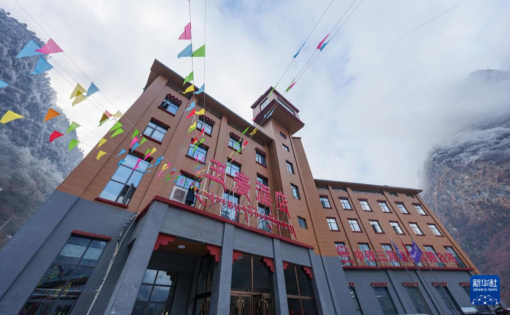 2月5日,玉麥酒店員工掛彩旗迎接即將到來的春節(jié)和藏歷新年。新華社記者 丁增尼達(dá) 攝