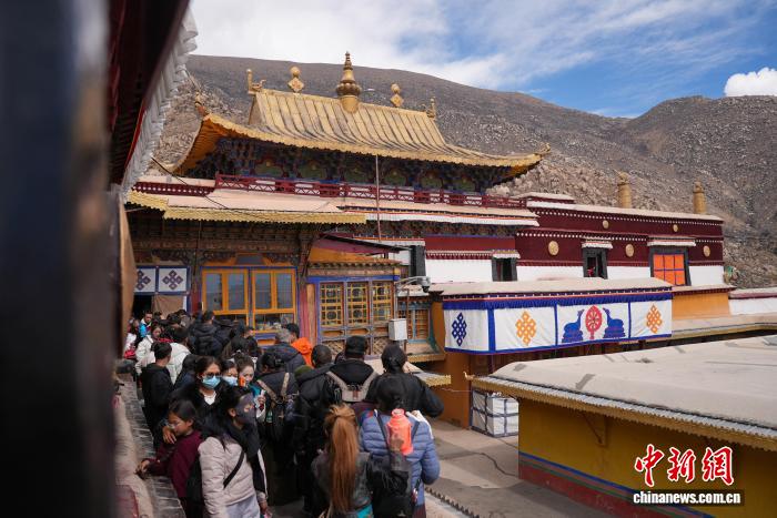 圖為信眾在哲蚌寺內(nèi)有序排隊朝拜。貢確 攝