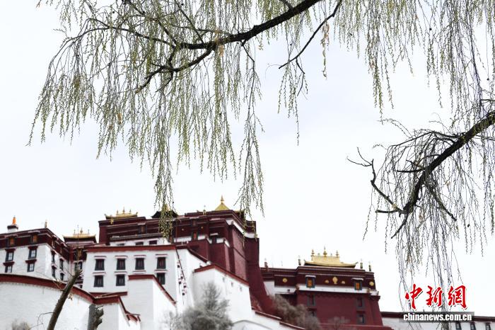 3月8日,西藏拉薩宗角祿康公園,楊柳吐綠。陽春三月,古城拉薩桃花初放、生機盎然,春意漸濃。中新社記者 貢嘎來松 攝