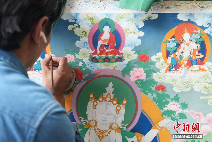 3月12日,記者探訪西藏丹巴繞旦唐卡藝術(shù)學校。該校1980年創(chuàng)辦,46年來免費培養(yǎng)唐卡藝術(shù)人才500余名,現(xiàn)有漢藏籍在校生80余名,學制8至10余年。校內(nèi)畫師以礦物顏料潛心創(chuàng)作,學校秉持“先做人后學藝”理念,通過系統(tǒng)化教學傳承勉唐派技藝,畢業(yè)生就業(yè)率近99%,推動唐卡文化持續(xù)傳承發(fā)展。圖為唐卡作品。貢確 攝