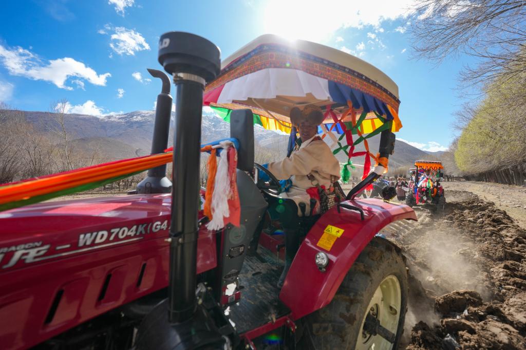 28歲的村民尼瑪扎西駕駛著一輛藍(lán)色“502型拖拉機(jī)”,拖著翻轉(zhuǎn)犁開進(jìn)農(nóng)田,劃開了沉睡一冬的沃土。這是他的第三代“鐵?!保侨ツ暾a(bǔ)貼8000多元買的。“家里14畝地,以前平整、播種,要花半個(gè)月時(shí)間,現(xiàn)在半天就完成了。”尼瑪扎西說。