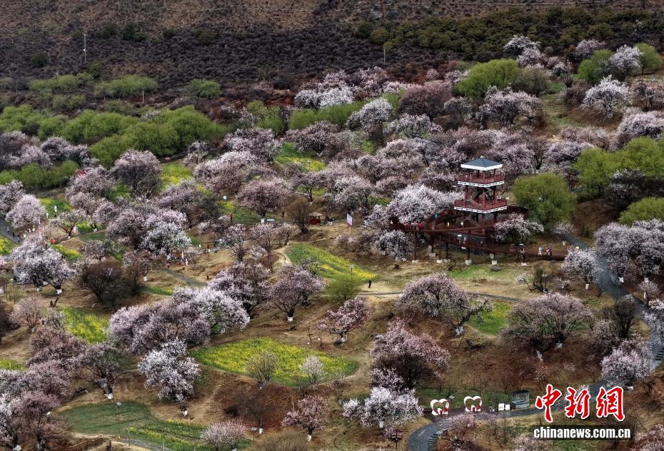 3月27日,西藏林芝市巴宜區(qū)嘎拉村桃花美景。時(shí)下,西藏林芝市的千余株野生桃樹次第綻放,美不勝收。(無人機(jī)照片)中新社記者 李林 攝