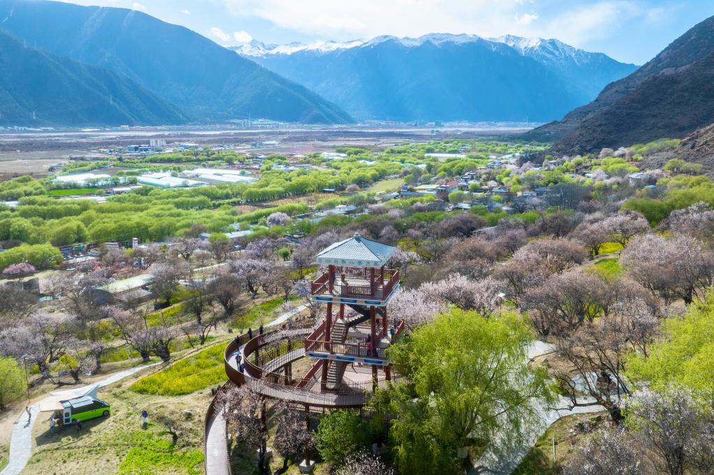 隨著桃花節(jié)名氣漸長,在廣東援藏力量的幫助下,嘎拉村于2015年建起“嘎拉桃花源”景區(qū)。曾經(jīng)狹小的觀景臺得以拓寬、干凈整潔的公廁取代了簡陋的旱廁、坑洼的土路也被鋪成石板步道、桃林中修起一座座古色古香的涼亭……基礎(chǔ)設(shè)施提升,“嘎拉桃花源”景區(qū)初具規(guī)模,村里的文旅收入逐年增加。
