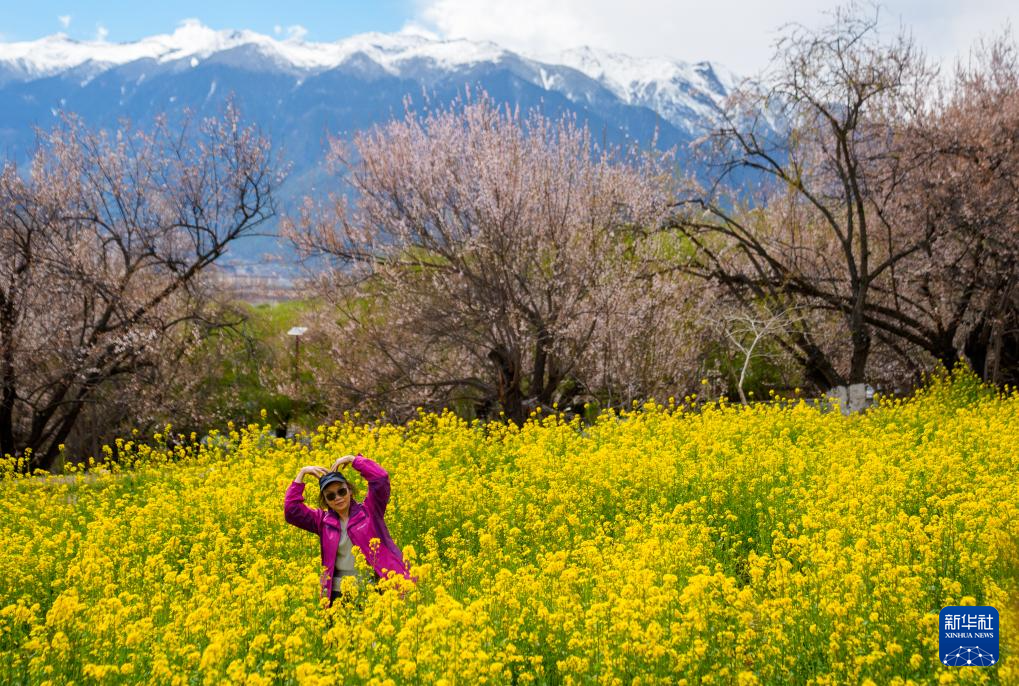 游客在林芝市巴宜區(qū)嘎拉村拍照留念(4月2日攝)。新華社記者 丁增尼達(dá) 攝