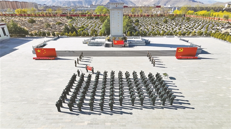 西藏軍區(qū)某部在拉薩烈士陵園開展清明祭掃活動。記者 王香香 通訊員 吳成淼 攝