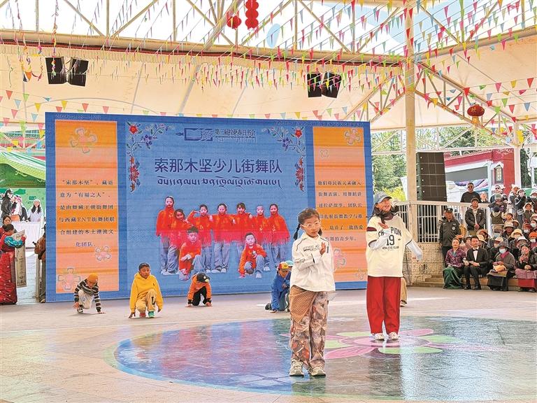 第三屆“拉薩春日書(shū)會(huì)”暨拉薩市全民閱讀推廣周系列活動(dòng)開(kāi)幕式現(xiàn)場(chǎng)的少兒街舞表演。