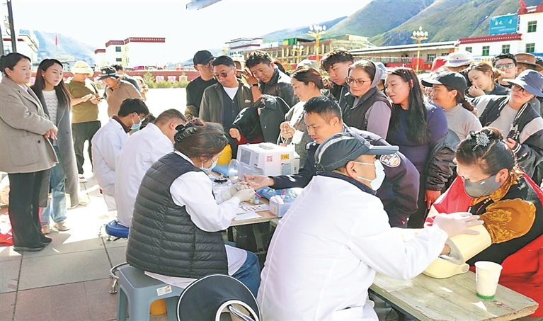 圖為那曲市中心血站赴嘉黎縣開(kāi)展團(tuán)體采血活動(dòng)。記者 趙書(shū)彬 攝