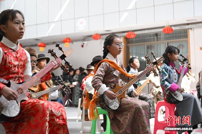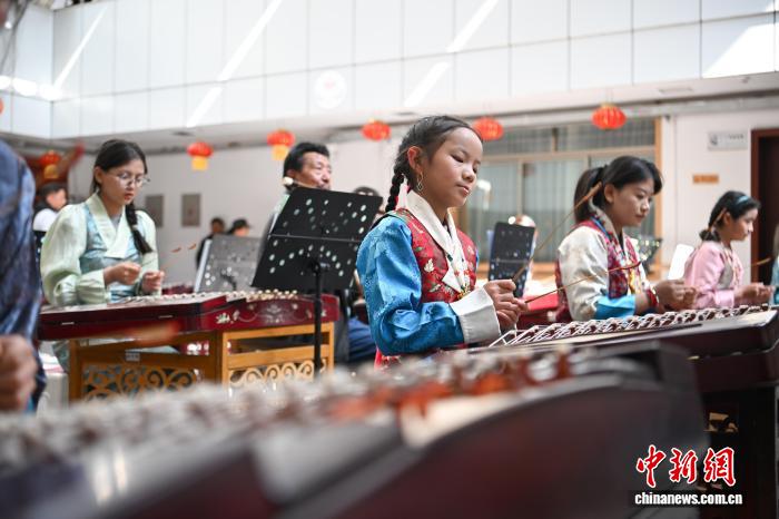 圖為結(jié)業(yè)典禮上少兒揚(yáng)琴班進(jìn)行表演。貢嘎來(lái)松 攝