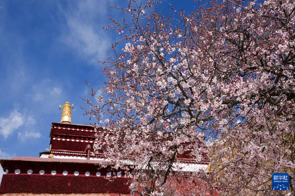 拉薩古剎帕崩崗四周桃花盛開(4月5日攝)。新華社記者 旦增尼瑪曲珠 攝