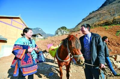 全國(guó)人大代表、四川雅安市漢源縣永利鄉(xiāng)古路村黨支部書(shū)記駱云蓮(左)在古路村六組和村民交談。新華社記者 薛玉斌攝