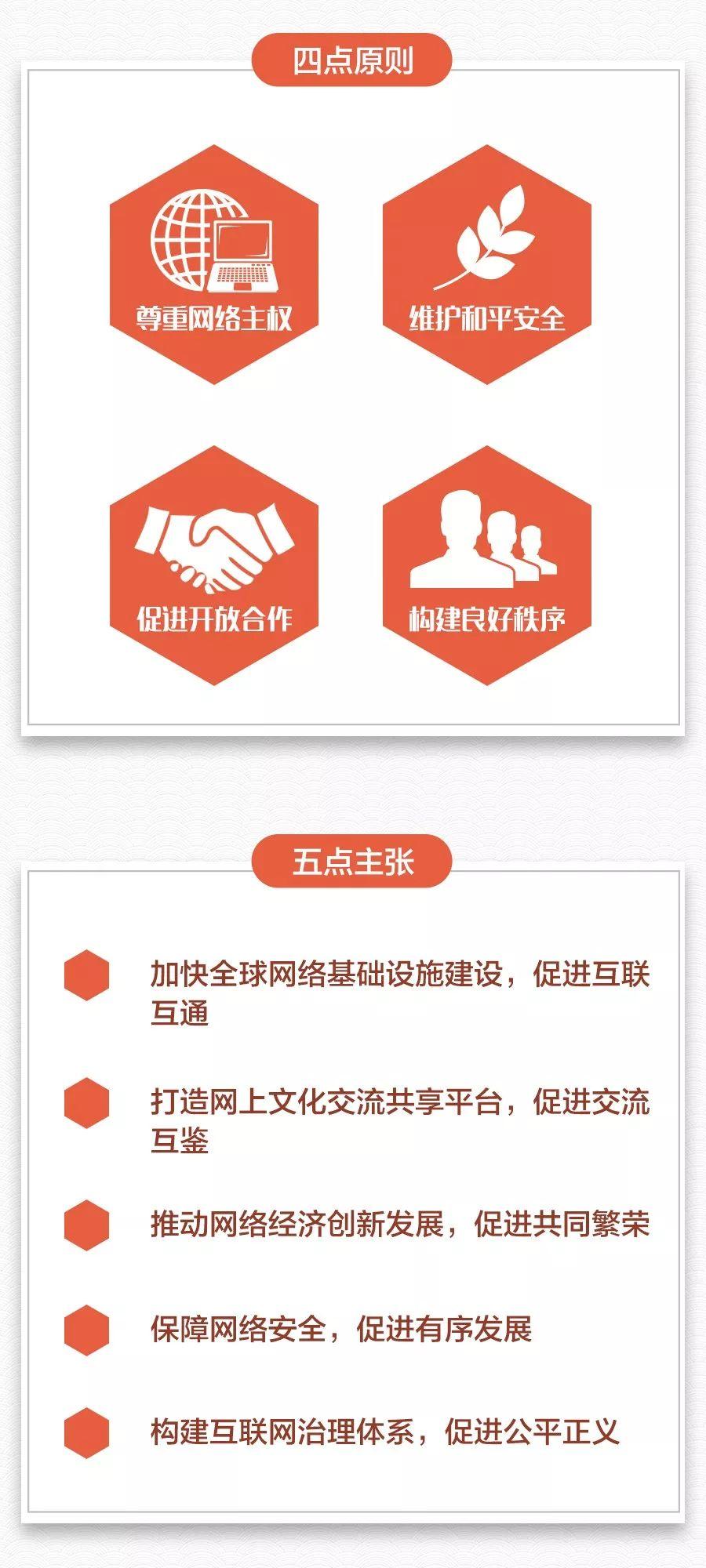 習(xí)近平曾指出,互聯(lián)網(wǎng)發(fā)展是無(wú)國(guó)界、無(wú)邊界的,利用好、發(fā)展好、治理好互聯(lián)網(wǎng)必須深化網(wǎng)絡(luò)空間國(guó)際合作,攜手構(gòu)建網(wǎng)絡(luò)空間命運(yùn)共同體。要理直氣壯維護(hù)我國(guó)網(wǎng)絡(luò)空間主權(quán),明確宣示我們的主張。為此,習(xí)近平提出“四點(diǎn)原則”和“五點(diǎn)主張” :