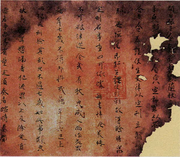 唐律在中國法制史上居于承前啟后的重要地位,以“得古今之平”著稱于世。《唐律疏議》在《貞觀律》基礎上修訂而成,為大唐盛世奠定了法律基石,充分體現(xiàn)了中國古代法律制度的水平、風格和基本特征,成為中華法系的代表性法典之一。圖為《唐律疏議》殘片(局部)。