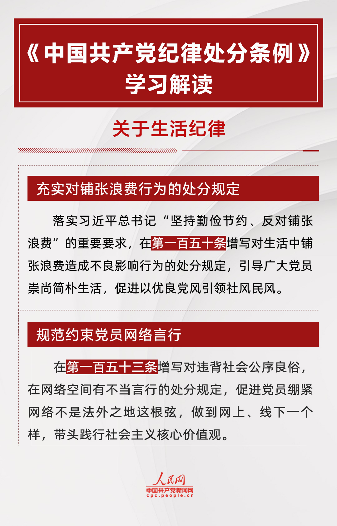 《中國(guó)共產(chǎn)黨紀(jì)律處分條例》關(guān)于“對(duì)違反生活紀(jì)律行為的處分”章節(jié)共5條,修改2條。