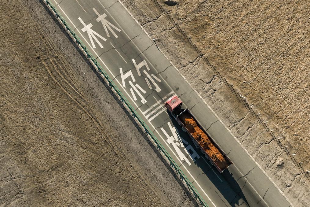 “經(jīng)過改建,如今的鹽橋已經(jīng)與普通柏油路沒有區(qū)別。”青海省公路局格爾木公路段段長(zhǎng)賈國(guó)平拿著石碑下方干裂翹起的一片鹽蓋說,路的最下方就是它。這條路從上到下依次是鋪筑的瀝青混凝土面層、水泥穩(wěn)定基層、砂礫層和天然鹽蓋。鹽蓋下方就是深達(dá)10至20米的結(jié)晶鹽和晶間鹵水,公路實(shí)際上就像一座橋浮在鹵水上,就此形成了“車在鹽上走,水在鹽下流”的奇觀。