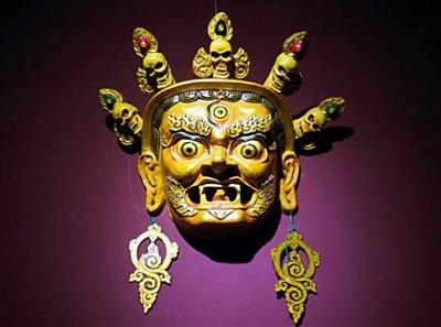 面具,藏語中稱“巴”,主要用于各種民間表演活動(dòng),它與人們?nèi)粘I?、勞?dòng)、娛樂有著直接的關(guān)系,遍及全區(qū)各地。西藏面具大致分為差姆(跳神)面具、藏戲面具、懸掛面具三類。面具的制作材料有金質(zhì)、皮質(zhì)、祭品、木質(zhì)、紙質(zhì)、泥質(zhì)、貼布脫胎等。由于地域的差異、用途的不同,西藏面具呈現(xiàn)出多姿多彩、對(duì)比強(qiáng)烈、形式各異的特點(diǎn)。
