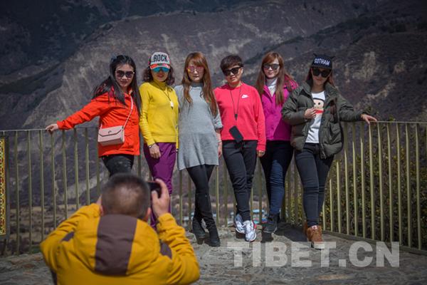 圖為“冬游西藏”游客合影留念 攝影:趙耀