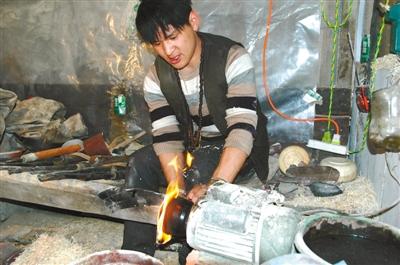 “90后”察隅木碗匠人江村羅布在作業(yè)。