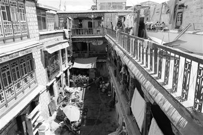 拉薩塊石碉樓四合院形成時(shí)間較早,現(xiàn)存建筑均有100多年的歷史,分布在著名的八廓古城,一般為貴族府邸和商賈宅院。由主樓和附樓圍合庭院構(gòu)成居住單元,花崗石塊石砌建筑體和木柱共同承重的石木結(jié)構(gòu)體系?!袄_地處拉薩河谷,地勢平坦,石材資源豐富,為塊石碉樓四合院提供了先天條件?!蔽鞑毓沤▽<荫R驍利說。