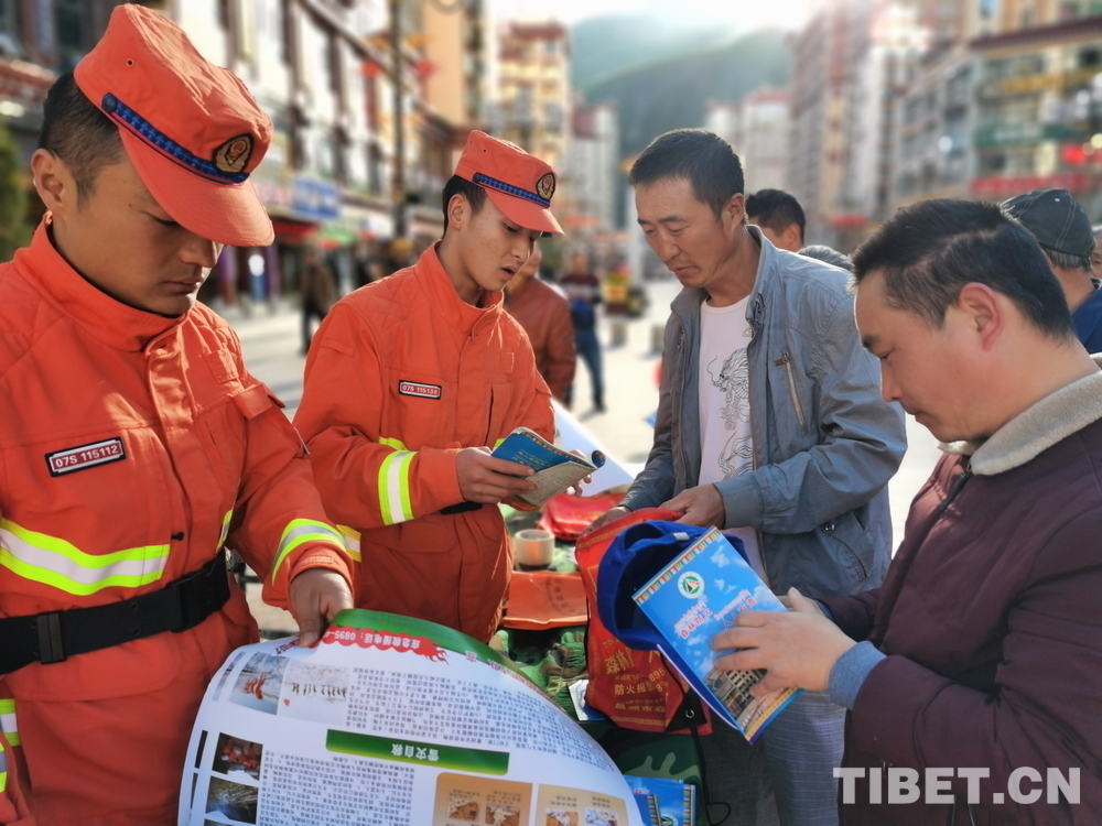 圖為昌都市森林消防支隊(duì)在游人如織的街頭宣傳防火知識(shí)