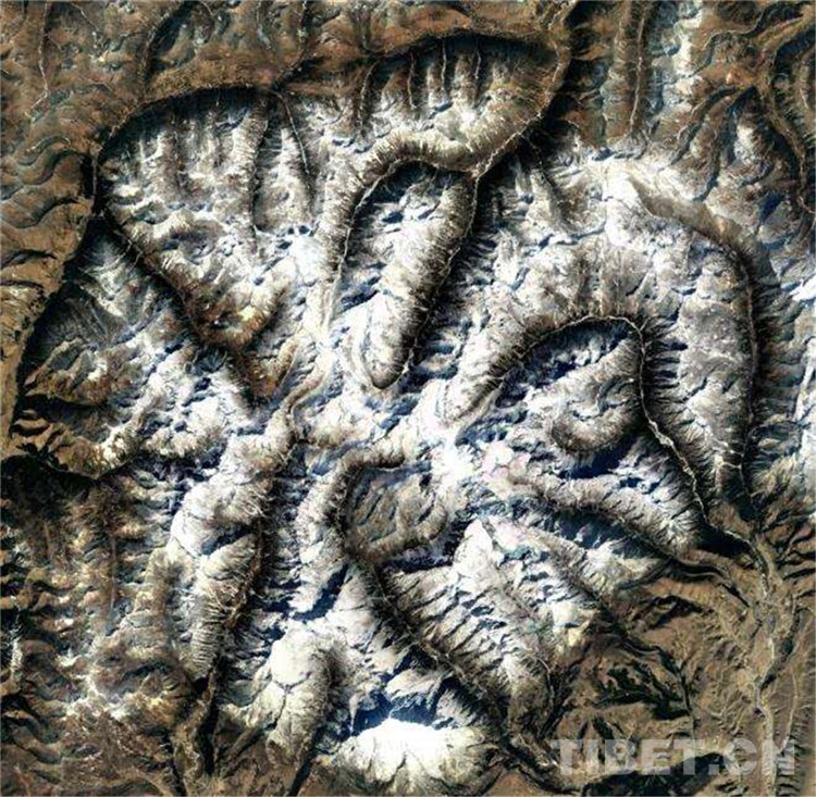 如花綻放的橫斷之心,由無數(shù)的雪峰連成山脈,形成朵朵花瓣?;ò曛g,是眾多呈放射奔流的溝谷河曲。這眾多的山脈和溝谷,組成花之輪廓。而猶為神奇的是,山脈與溝谷發(fā)源的地理原點,天然形成兩座大小不等而神似心形的“心山”,如同雪蓮花的雌雄花蕊。