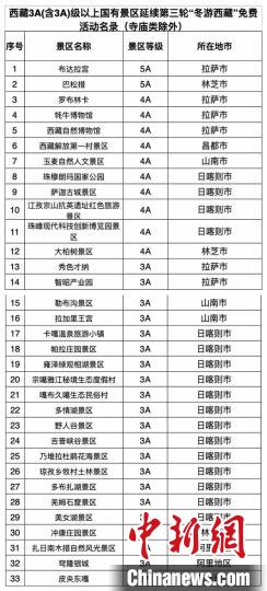圖為西藏參與“冬游西藏”活動(dòng)免費(fèi)景區(qū)名錄。西藏旅游景區(qū)協(xié)會(huì)籌備組供圖